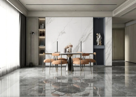 搭配暖灰色理石大板铺贴地面