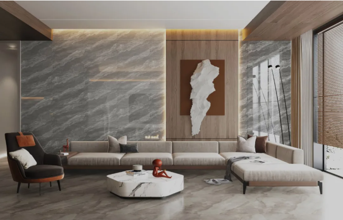 去繁从简的家居设计,干净利落的线条布局,墙色灯光搭配400X800mm通体瓷抛石中板-那波利构筑的柔和氛围,既保持了家的温馨,又加入了极简的艺术气息 。