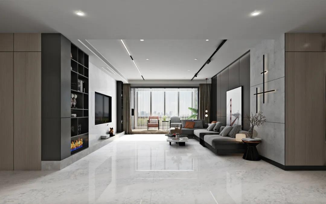 嵌入墙体的装饰架搭配线条延伸感十足的惠特灰,让空间场景更为阔落大气,让你结束一天行程后可以得到更舒展的放松。
