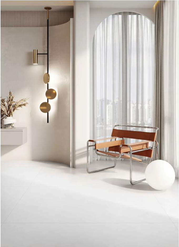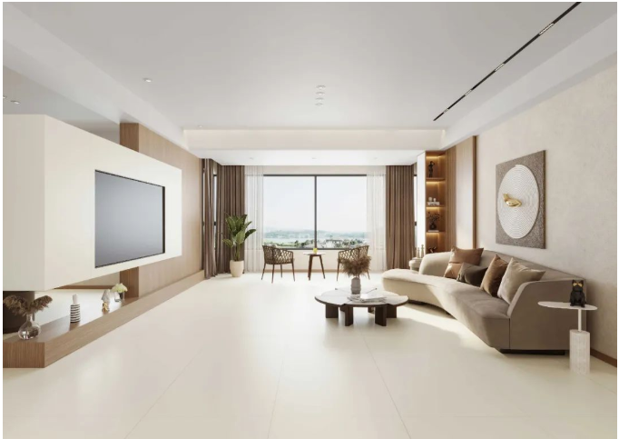 有着天然纹理的宋素|凡古砖,搭配质感柔软的绒布沙发,将视觉的饱和度降至最低,形成一种舒适的视觉效果。