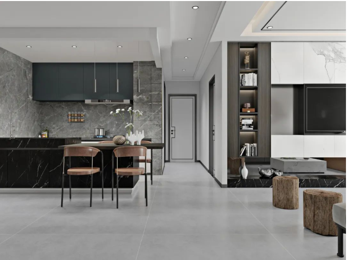 客餐一体化,大规格通铺设计,能让两个功能区连贯起来,让空间格局流动性更好,视野瞬间扩大。