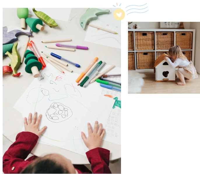 浅黄、浅灰、白色......采用简单的色彩,简单的设计,在视觉上更通透大气,活动更方便,也更能激发孩子想象力。