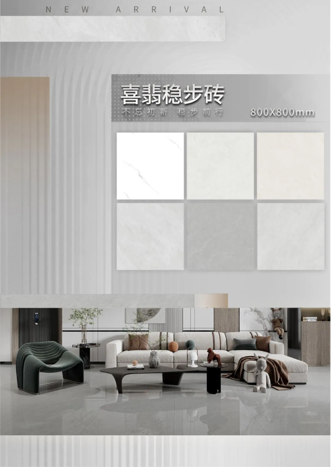 喜翡稳步砖在坯、釉、蜡水中均作创新处理,搭配复合创新技术,实用性能大幅提升,多维护守护家居安全。